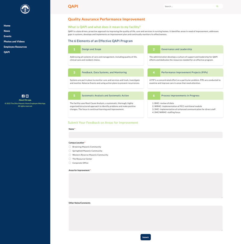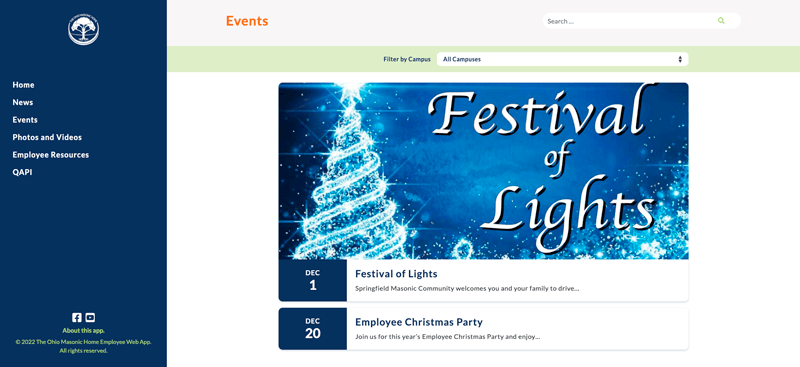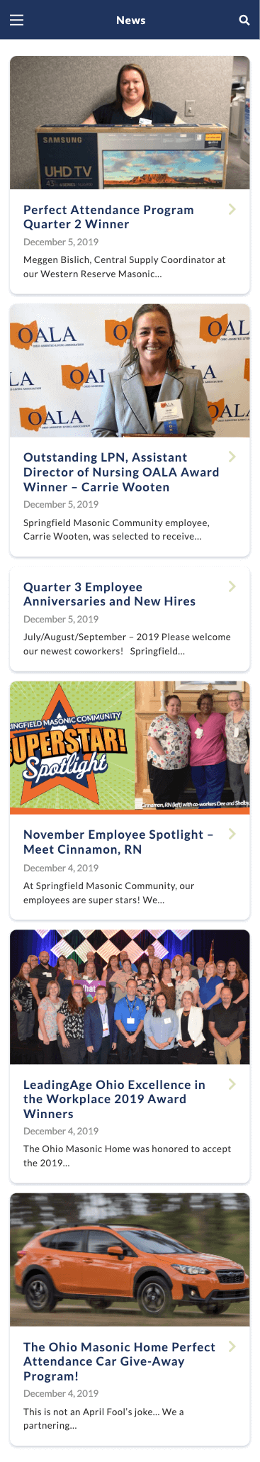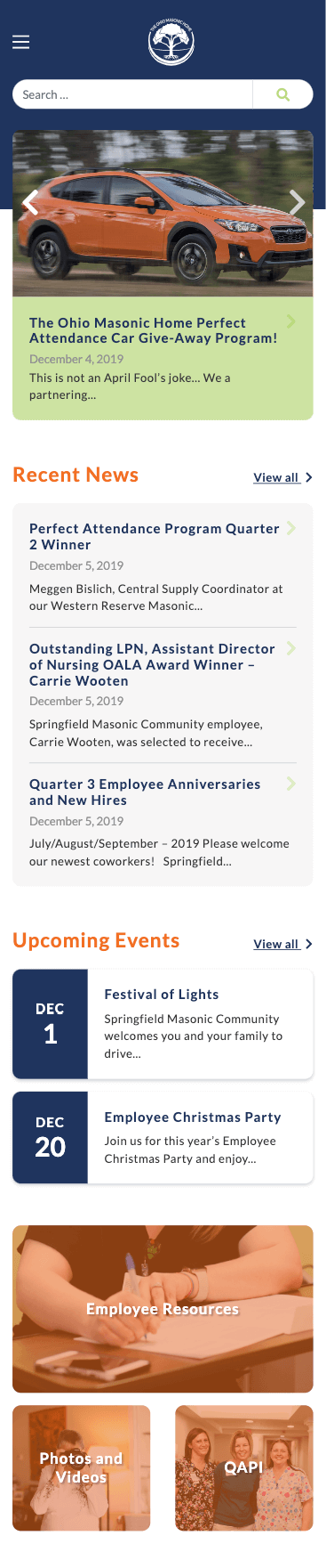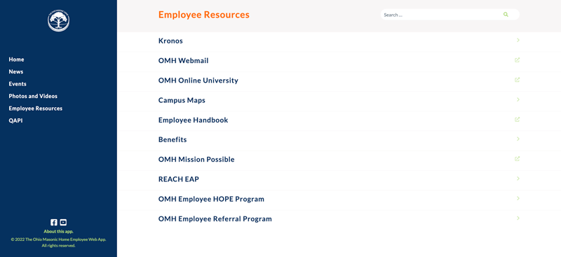 Ohio Masonic Home had an outdated employee app that wasn’t available on Apple’s App Store and was difficult to download and use for Android users. Our team came up with the solution to create a web app that could be downloaded on an employee’s phone and accessed on desktop computers without the issues of adding an app to different app stores.